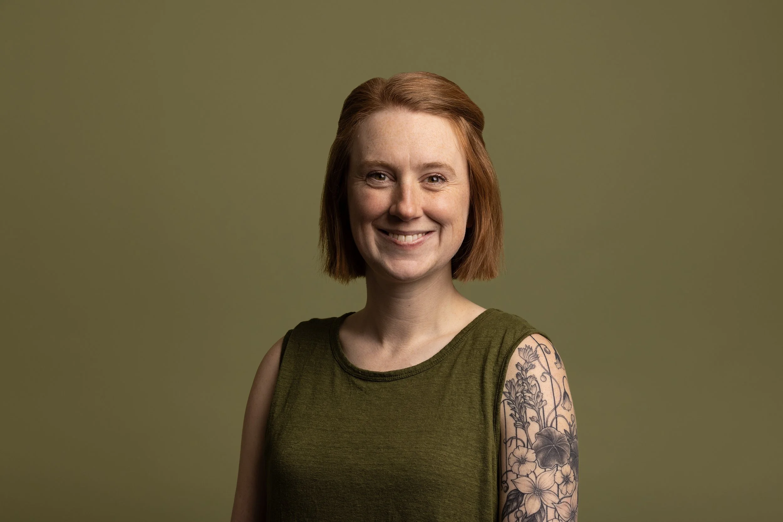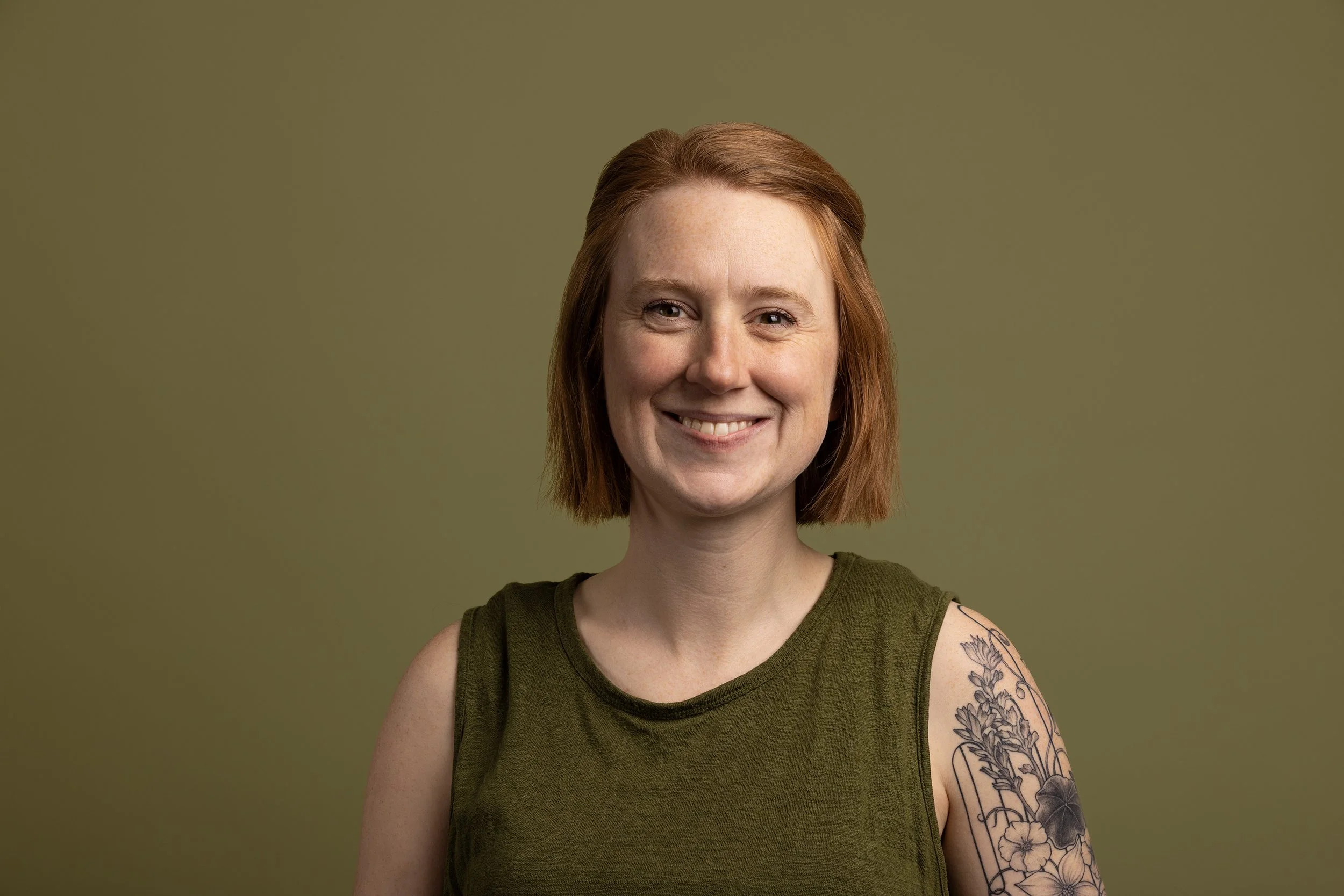 The soft main light from above casts a lovely uniform light on the face which helps smooth texture. A large white reflector helps to subtly fill in any shadows, while still letting the directionality of the main light do the heavy lifting.